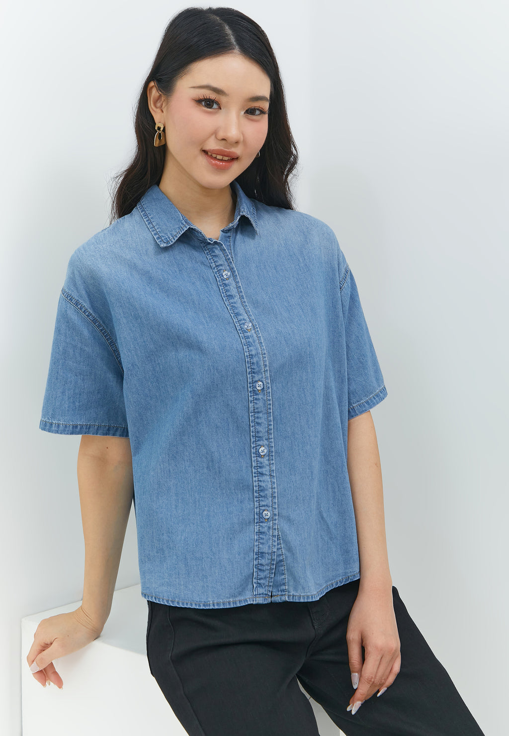 - Kemeja bahan katun denim