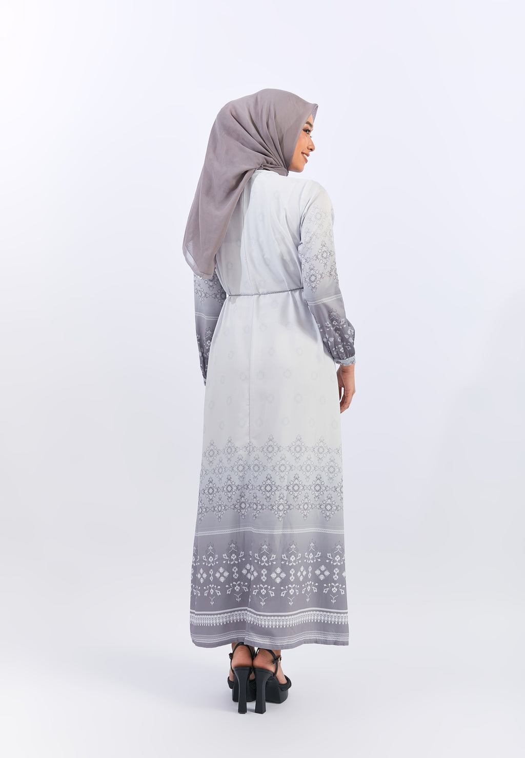 - Warna dasar abu-abu motif bunga