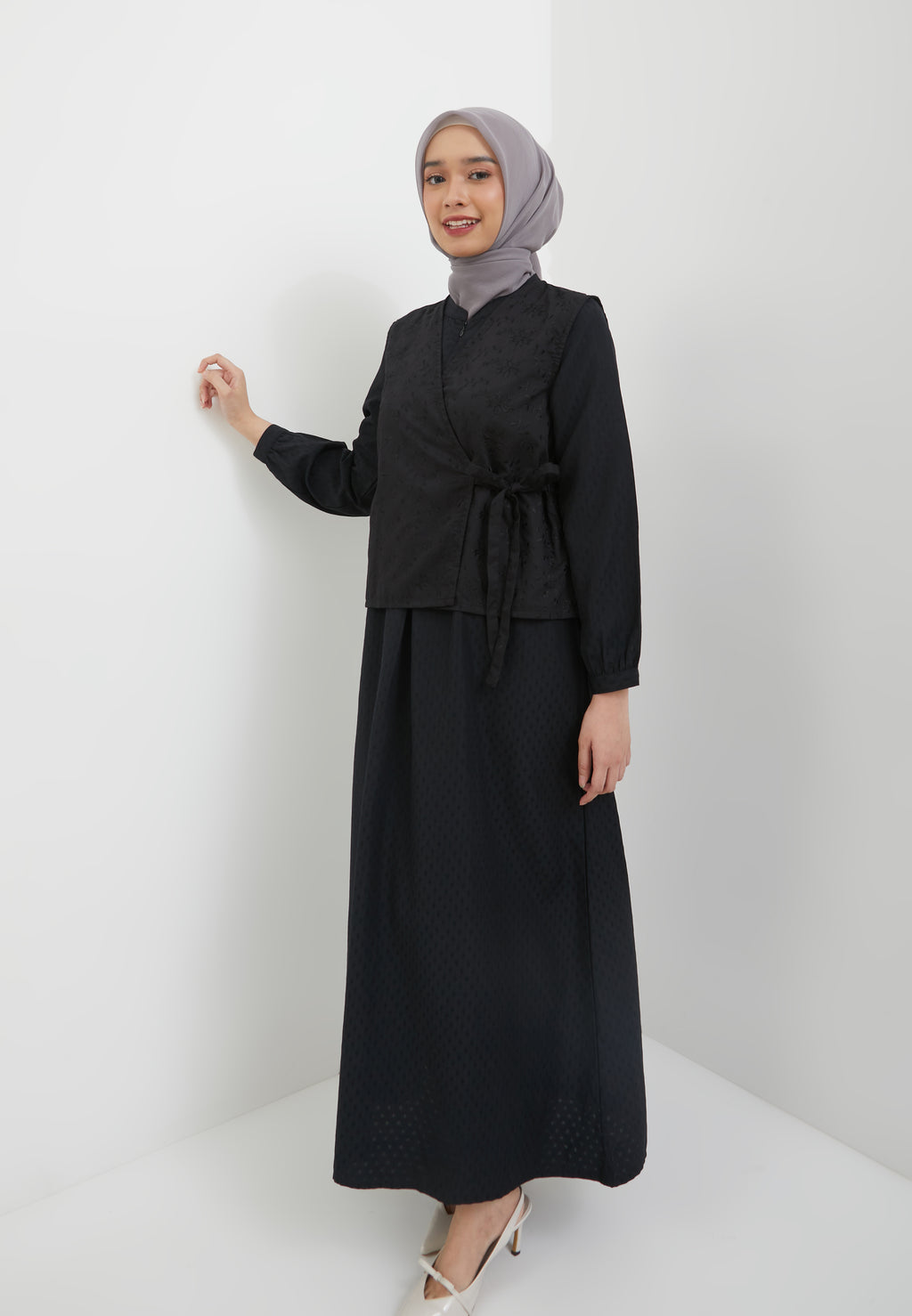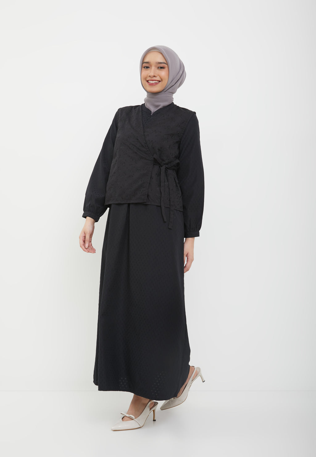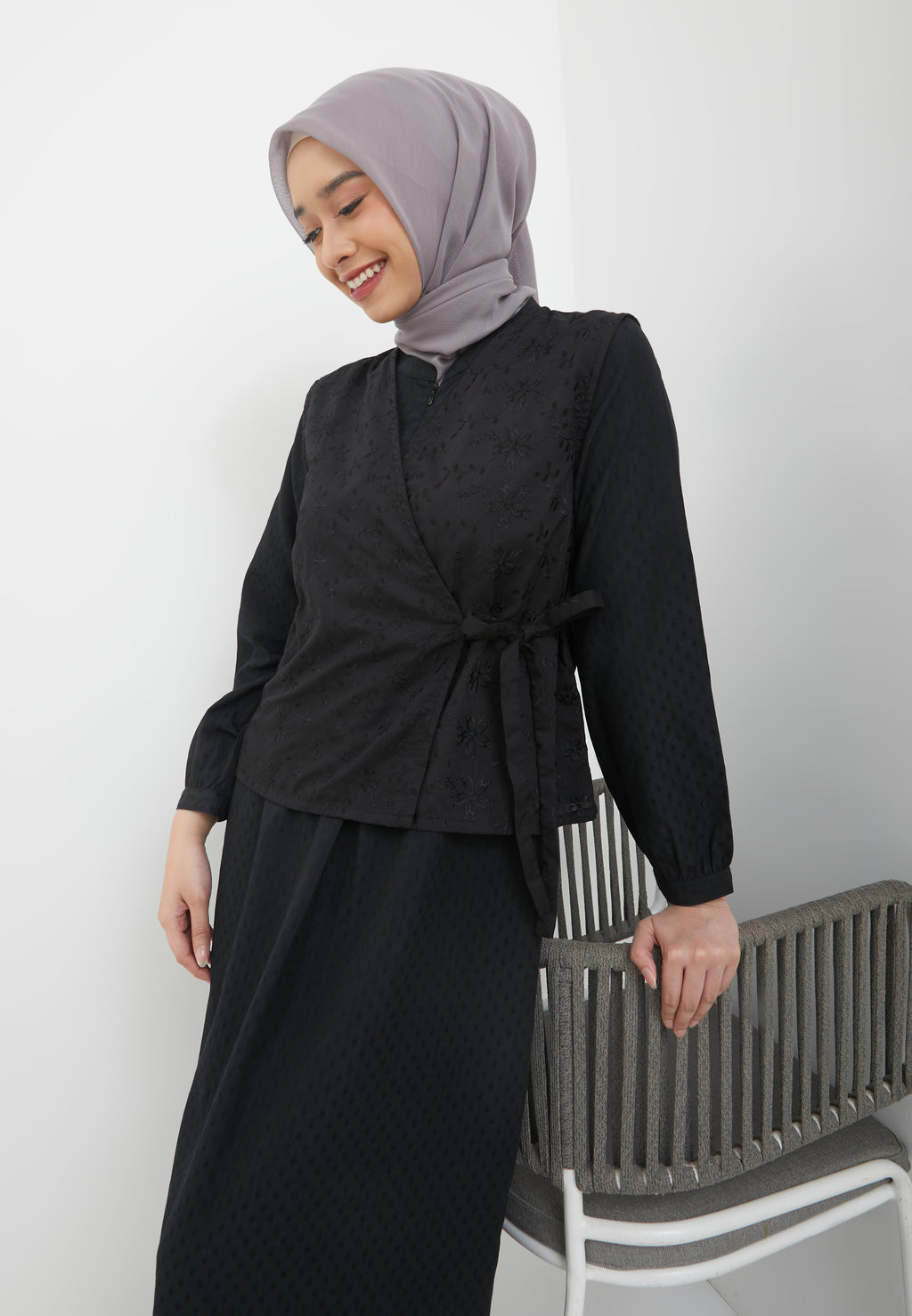 - Outer warna hitam motif bunga timbul / bordir