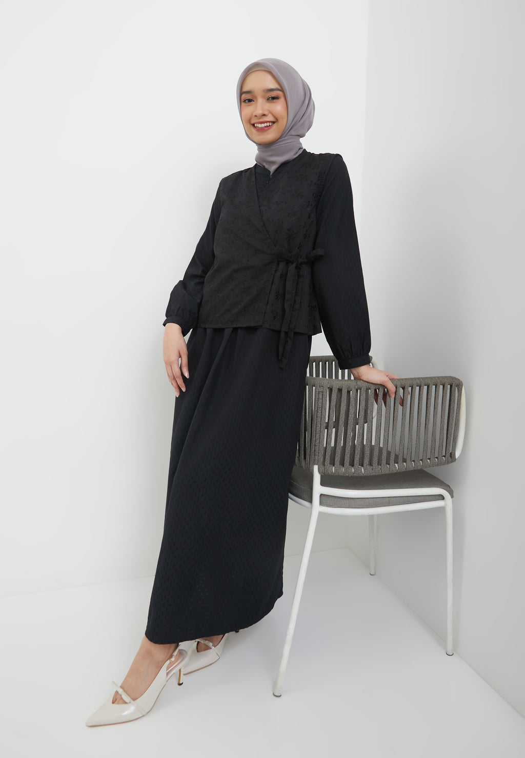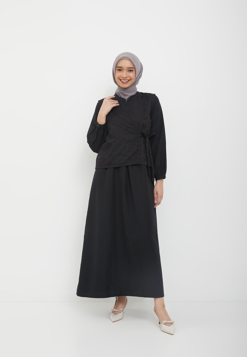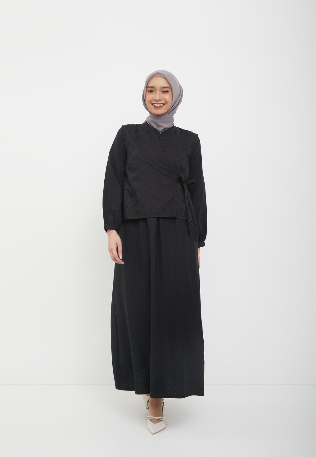 - Outer warna hitam motif bunga timbul / bordir