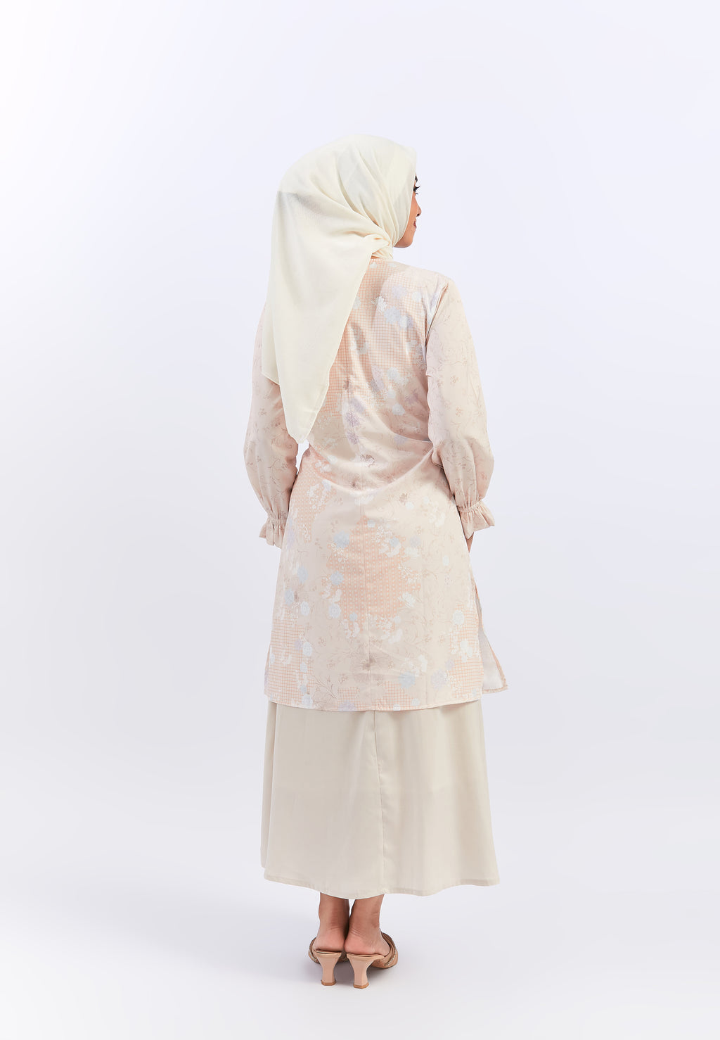 - Warna peach motif bunga