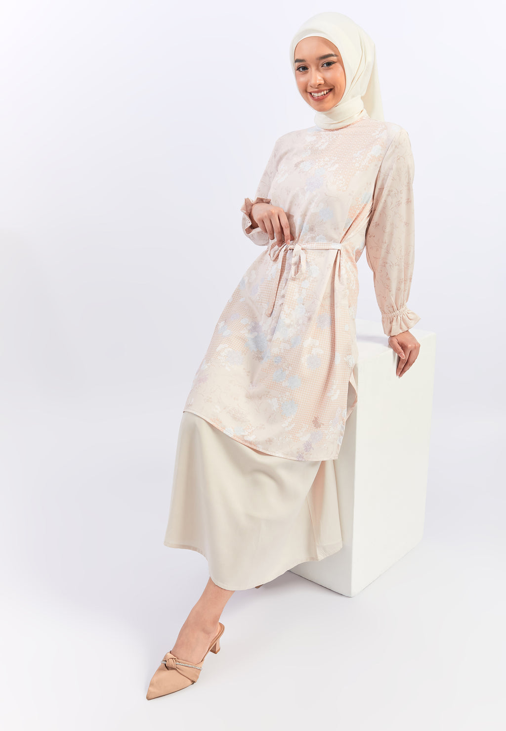 Geela X Aurelie Hermansyah Qamara Flower Peach Tunic | G.1731