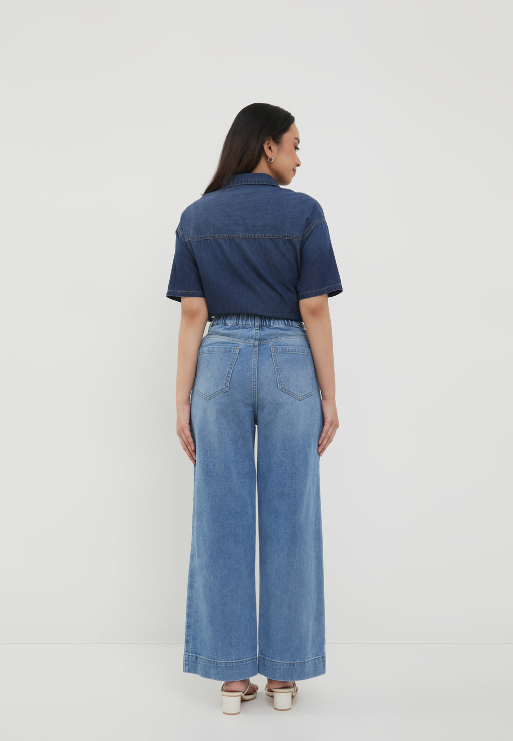 - Celana katun denim model Wide Leg Jeans