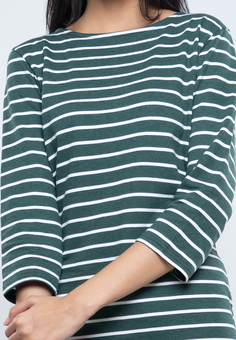 Dress Kaos Hijau Motif Garis
