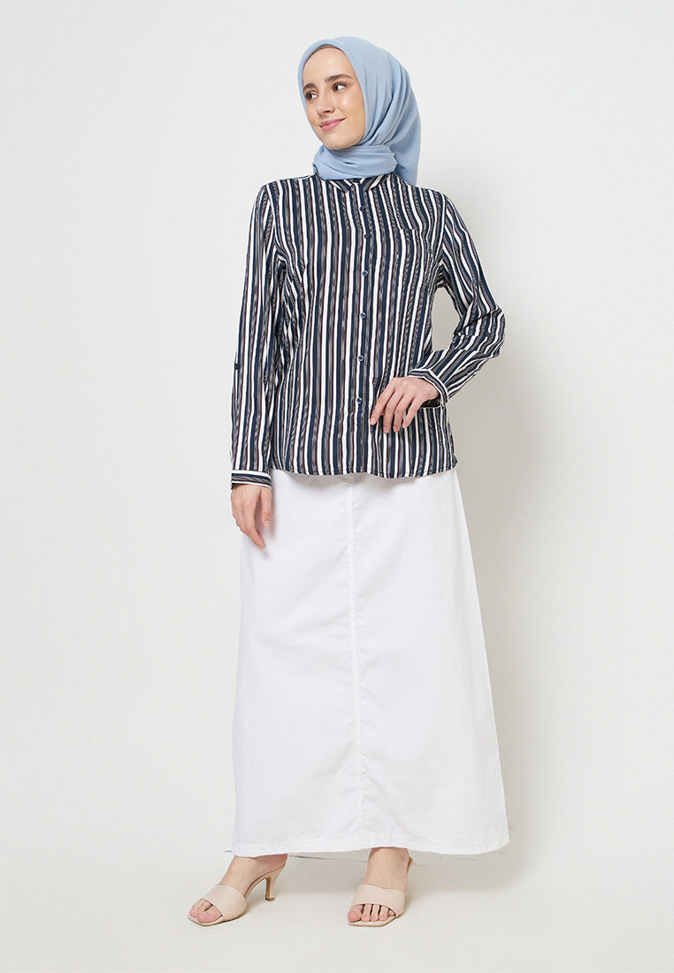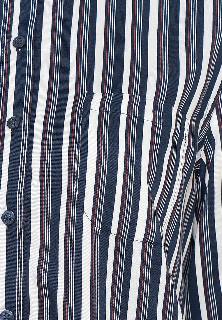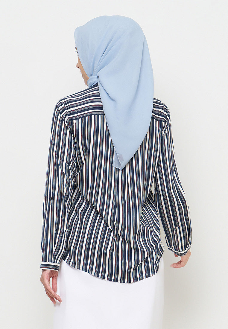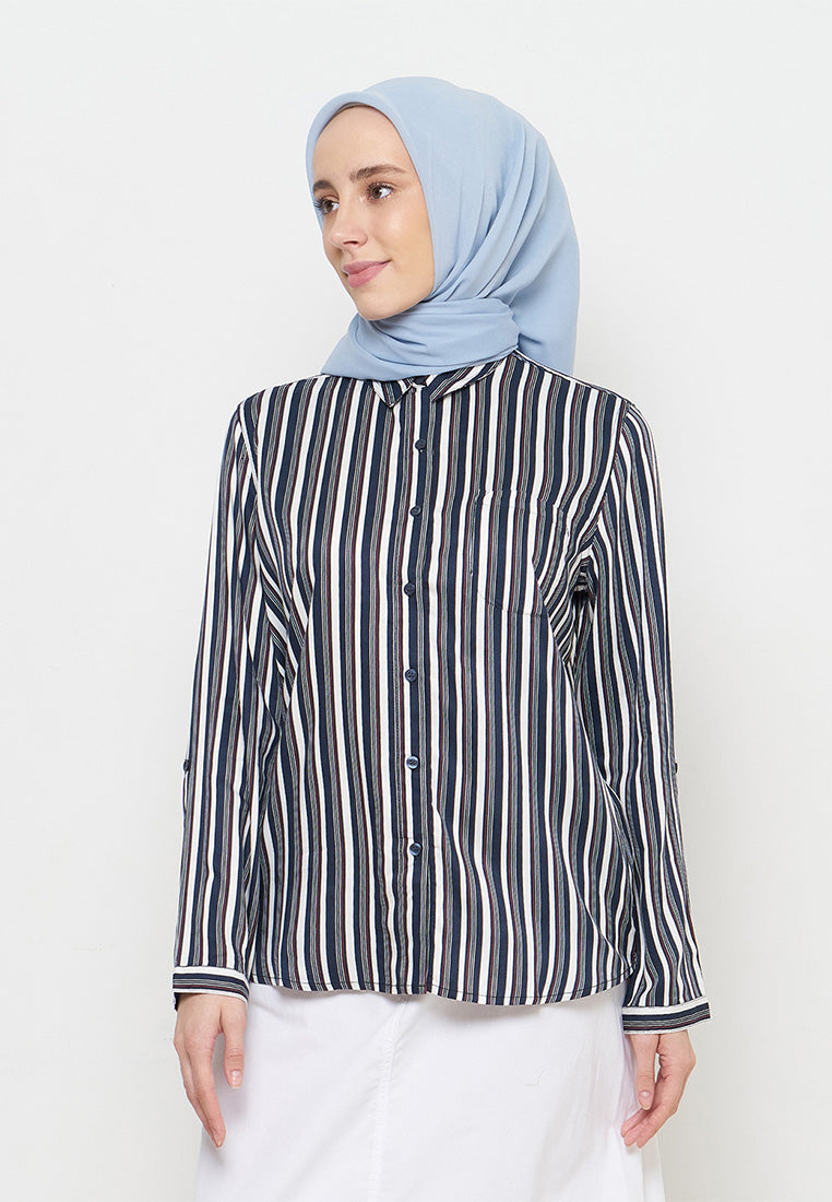 Kemeja Lengan Panjang Salur - Navy
